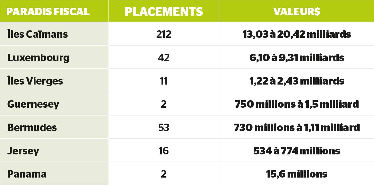 De tous les grands fonds d’investissements et de retraite au monde, la Caisse de dépôt et placement du Québec est d’ailleurs l’un des plus friands des paradis fiscaux.
